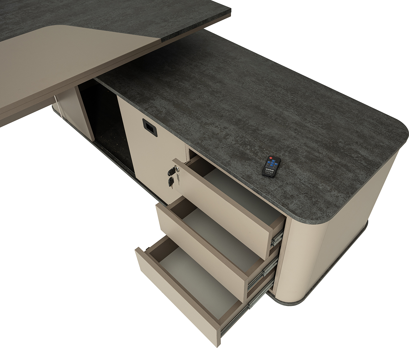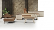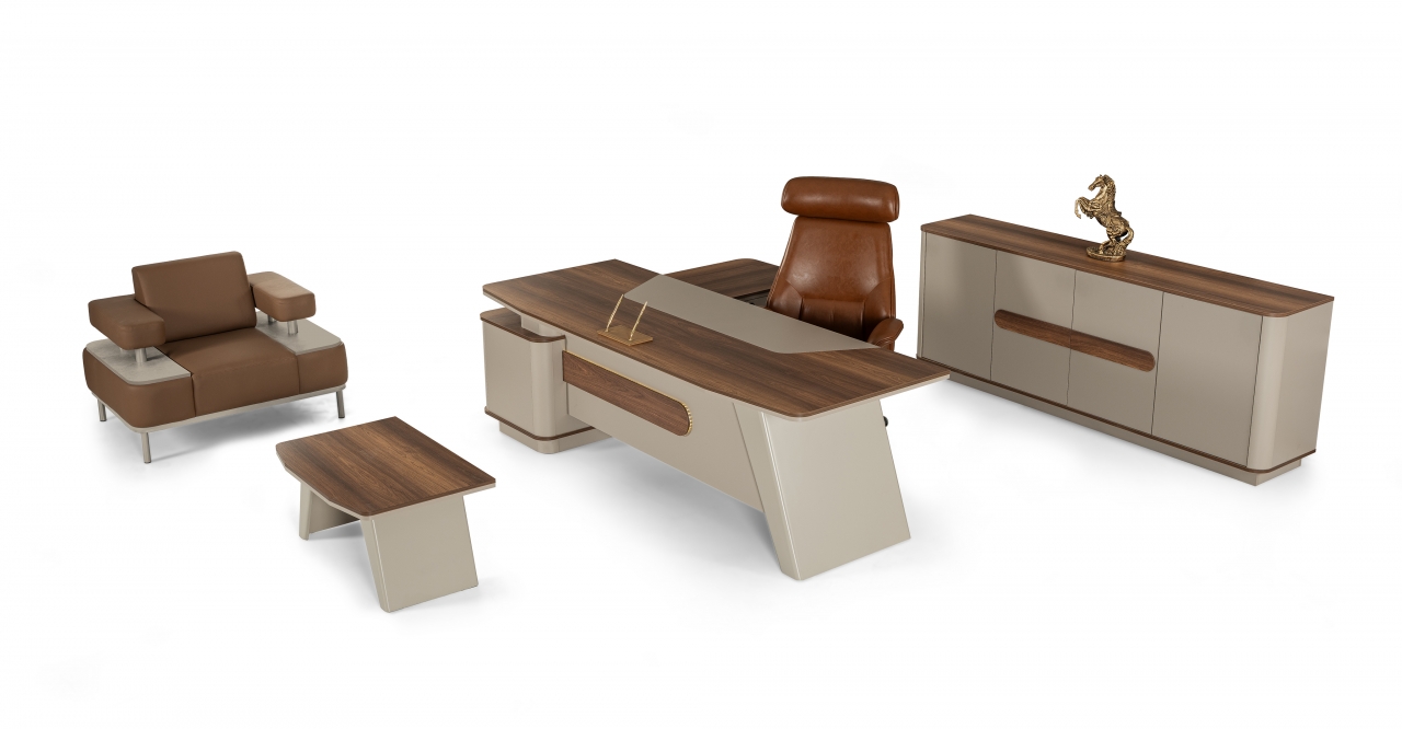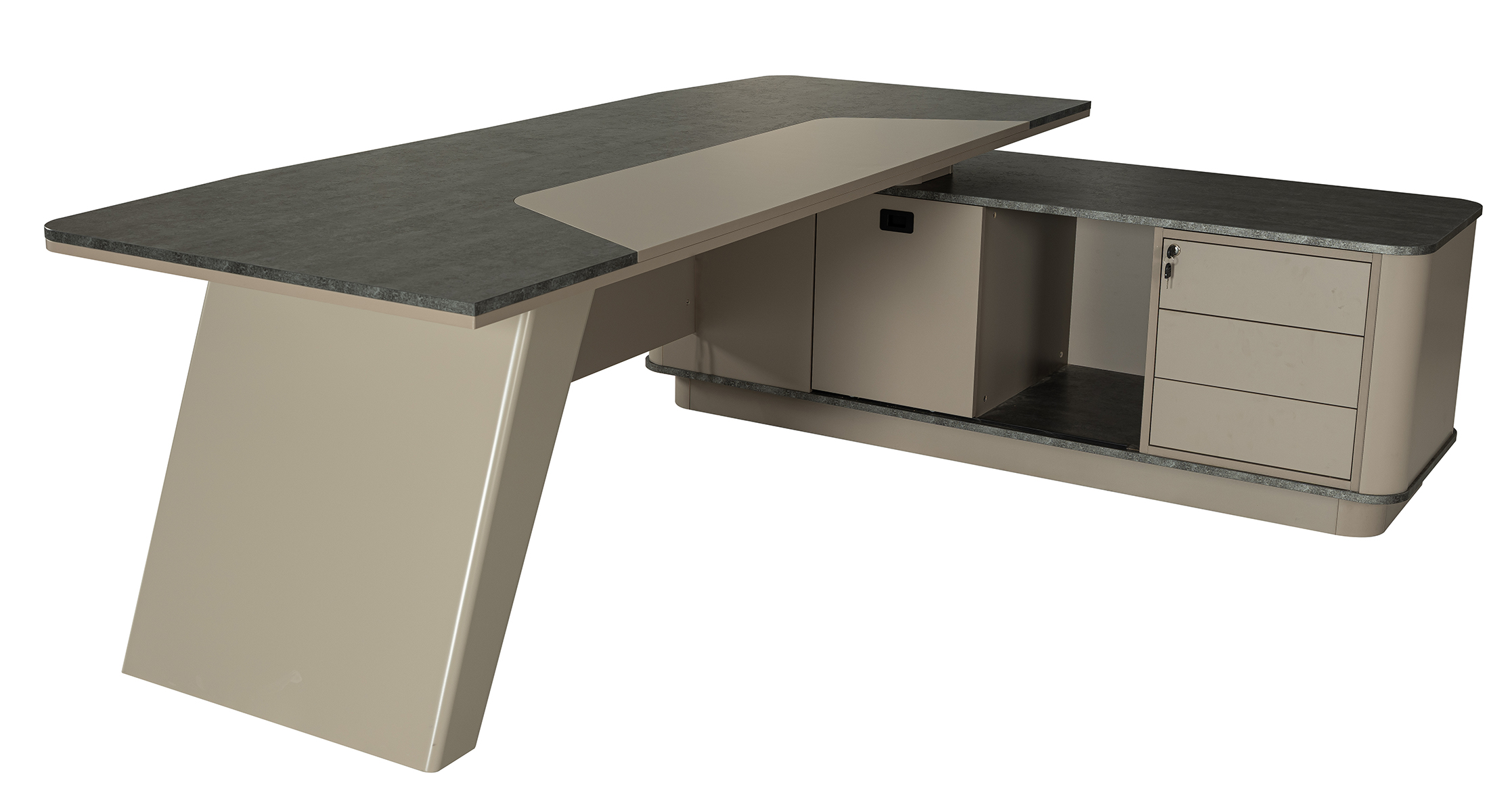 NEXUS Masa - Üst tabla 18+18 mm Myl Özel Tasarım Mdf Lake Ayak Etajer 3 Bas Çek Raylı Çekmeceli ve Dolap |